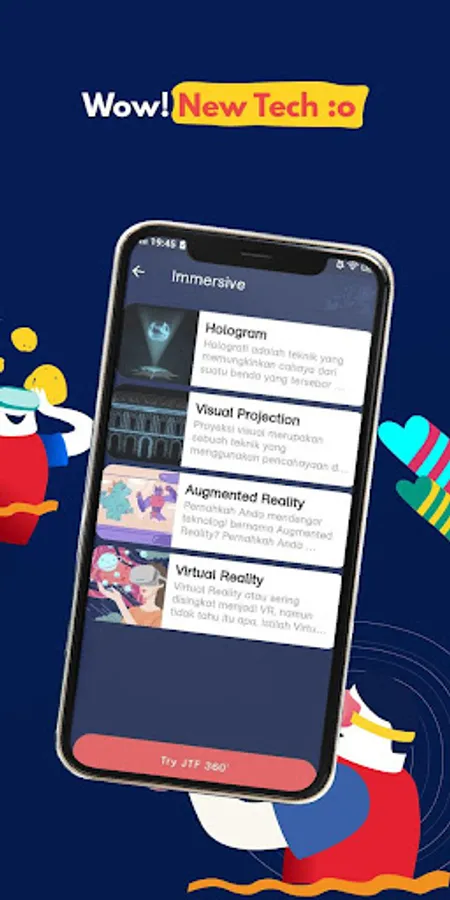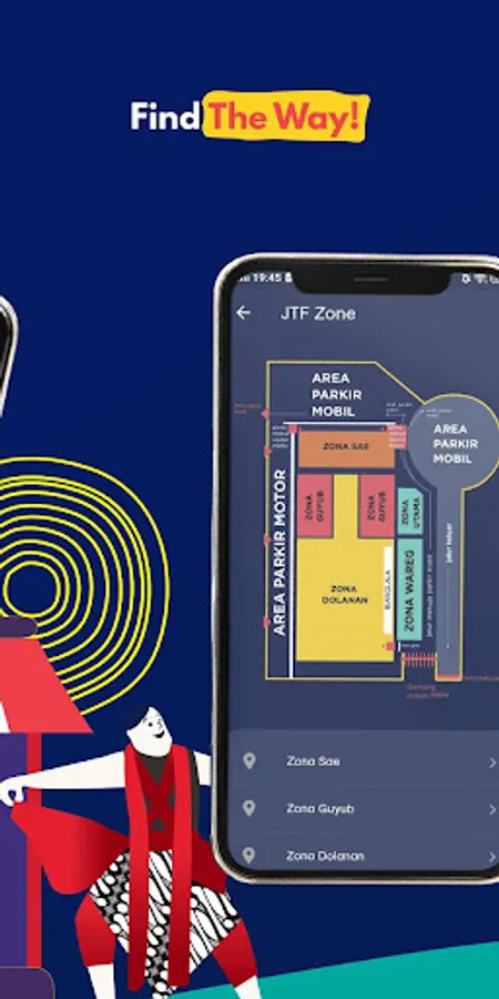 Supporting features of JTF application are information about maps and location zones, music concerts, arts and cultural attractions, merchandise, 360 Image, and ask me which all of these features are provided to facilitate people in getting information from Jateng Fair