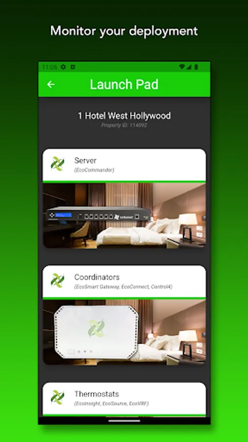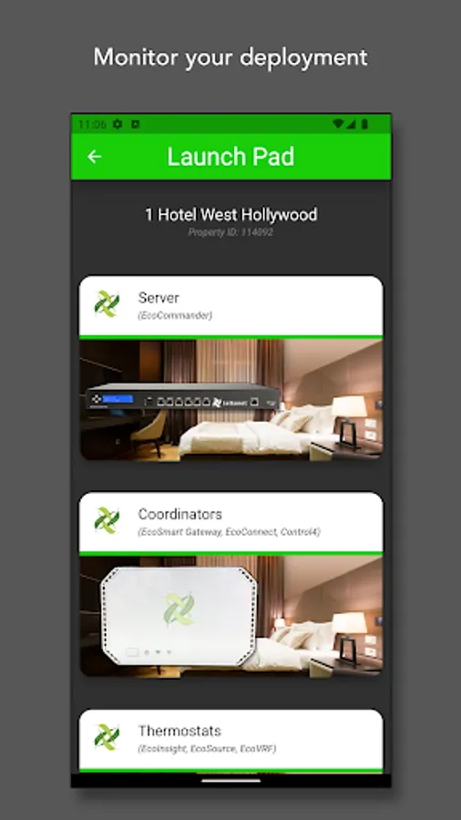 EcoCentral Mobile gives you the ability to remotely monitor your EMS on your Android device. You can quickly navigate from your server to your coordinators and your Zigbee devices including your Telkonet thermostats and end devices.