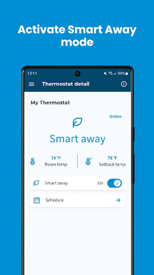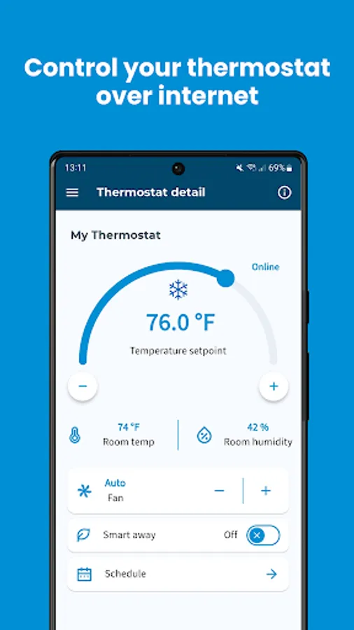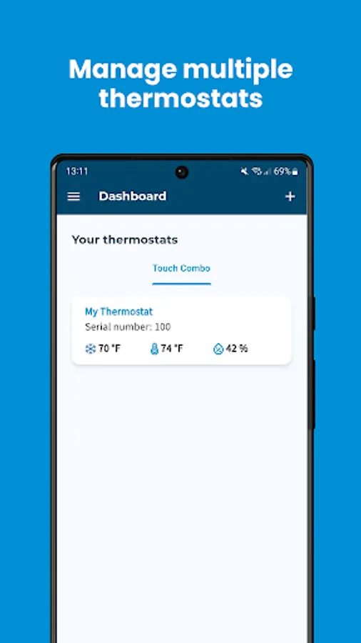 The Hickam Communities Smart Thermostat app is the tool you need to set up WiFi connectivity on your new Touch Combo thermostat, and then use it to remotely control your device.