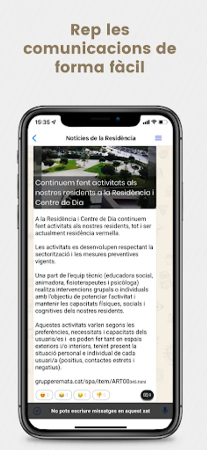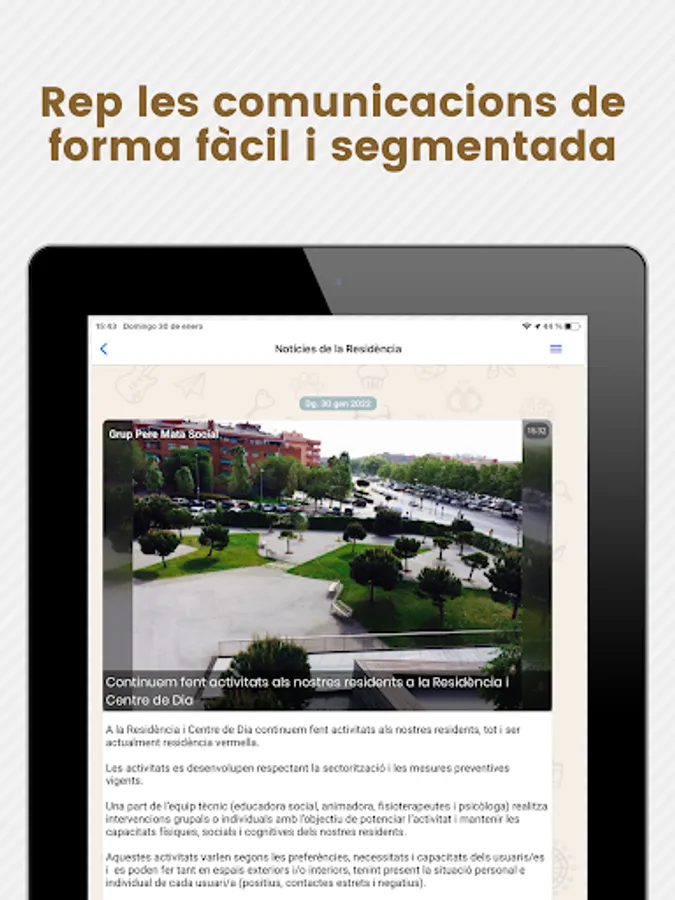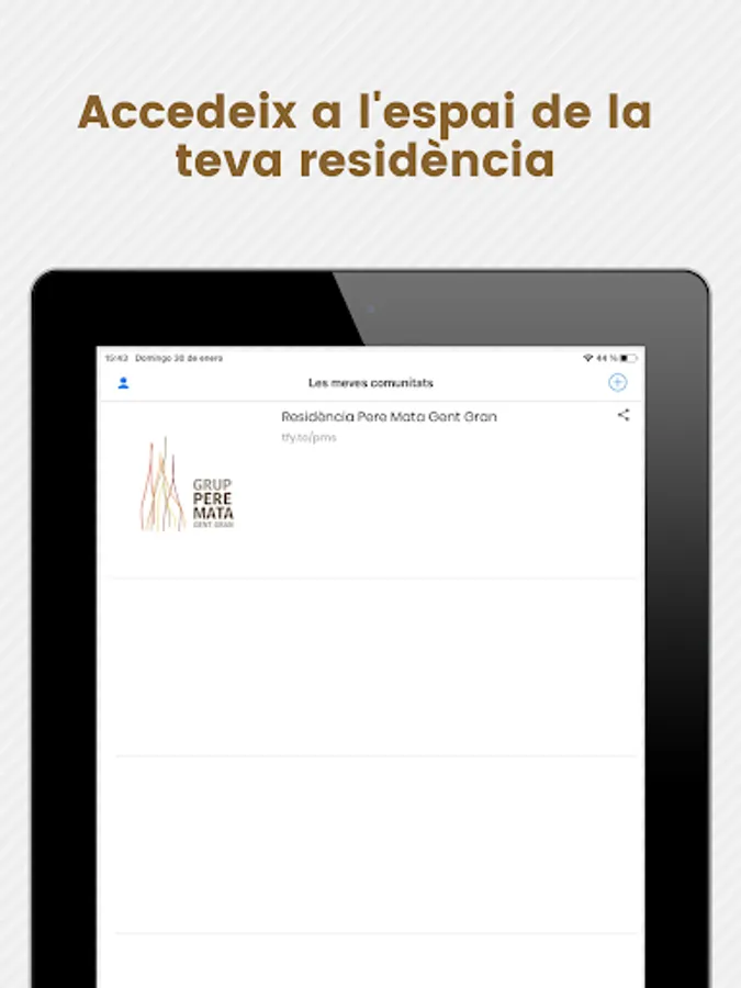 With the Grup Pere Mata Gent Gran application, you will receive all the communications of your residence instantly, in a simple, efficient and private way.