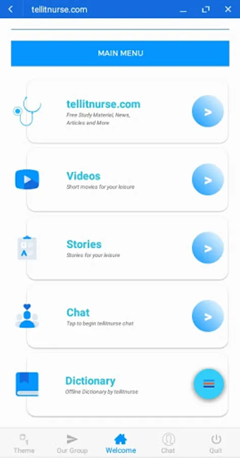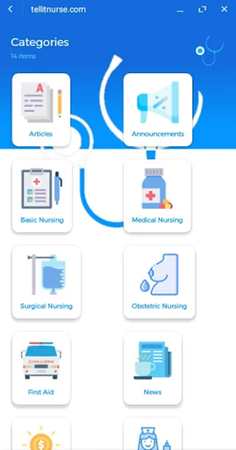 1. Access contents of tellitnurse.com easily from a grid menu.
