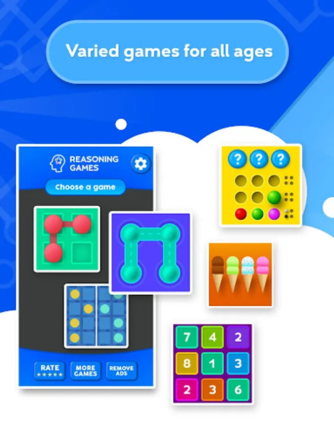 The different games of this app stimulate different aspects of reasoning such as numerical, logical or abstract reasoning.