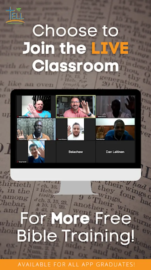 The TELL App is Hours of Bible Classes. Self-Study at Your Own Pace, or Join Live Classes. Our TELL Pastors can’t wait to meet you!
