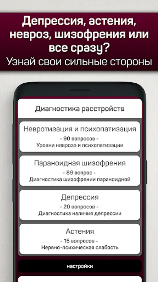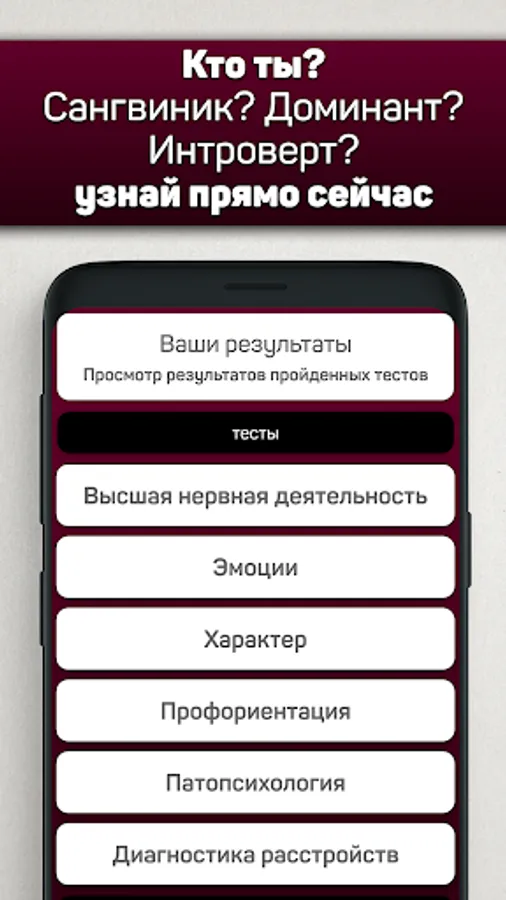 ATTENTION! Some tests may produce an unpleasant result. If you are not ready for this, we recommend that you refrain from testing (regarding character tests).