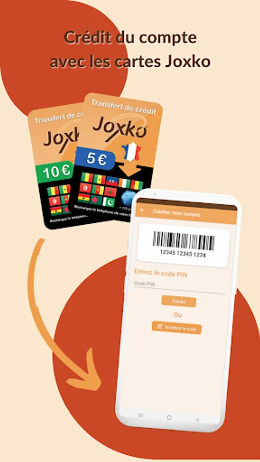 Enter the PIN code indicated on the Joxko Transfert cards (sold in Joxko partner shops) and the account will be automatically credited with the amount of the card.