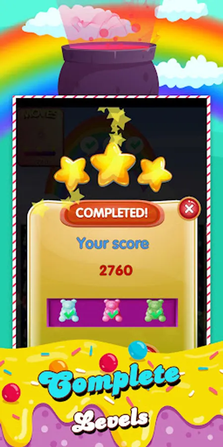 Match three or more the same telly bears to react the target and clear the levels