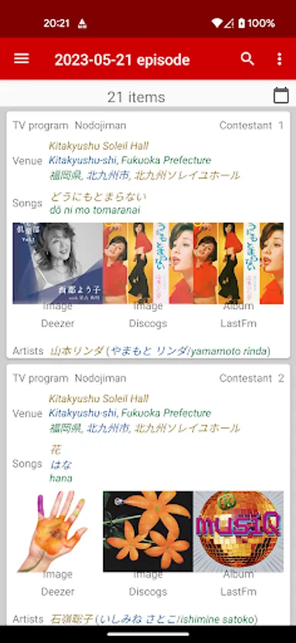 Nodojido provides a database of songs and artists performed on several Japanese TV shows: