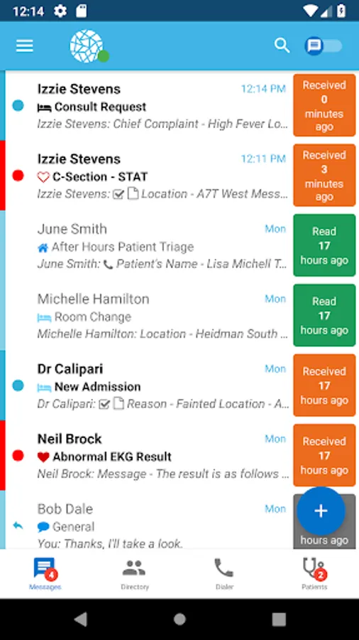 • Unified Communications: Our mobile applications allow for real-time texting and voice communication between clinicians. Multimedia messaging with photos, voice, and attachments are supported as are the ability to record and deliver voicemails when clinicians are busy with patients.