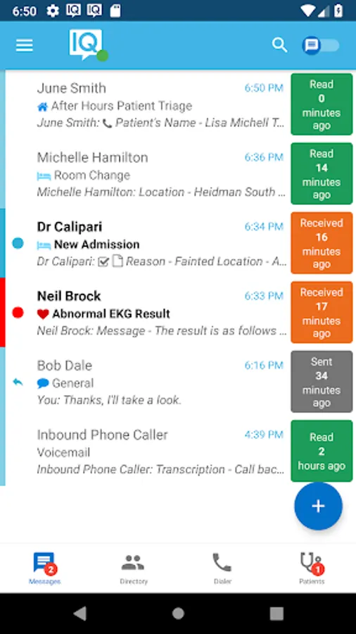 • Unified Communications: Our mobile applications allow for real-time texting and voice communication between clinicians. Multimedia messaging with photos, voice, and attachments are supported as are the ability to record and deliver voicemails when clinicians are busy with patients.