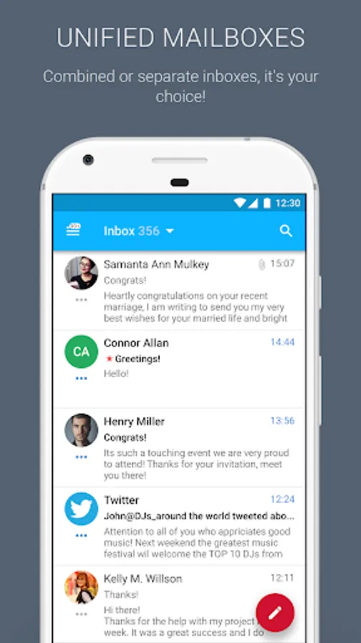 Unified Experience – Combine emails from all of your accounts into a unified mailbox or view each account separately.