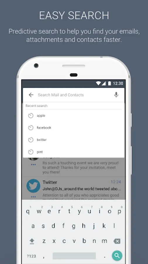 Smart Search – Powerful predictive search allows you to find any email, contact or attachment quickly and accurately from all accounts whether it’s stored locally or on the server.