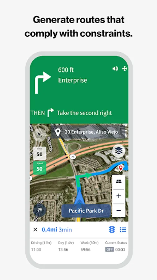 - Generate driver routes that comply with vehicle constraints for trucks and hazardous materials, including truck weight, size and load—plus set preferences for same side routing, U-turns and toll road usage.