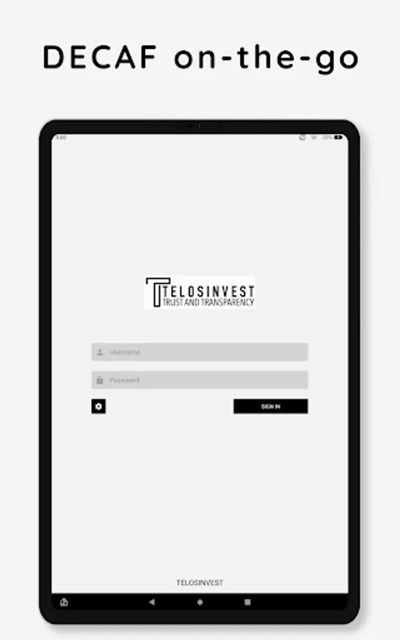 This mobile application requires authorized credentials to a DECAF Instance provisioned for production purposes. Users of this application are prompted for (a) the base URL of a DECAF Instance, (b) username of an active system user on this DECAF Instance, and (c) password of the user associated with the username.