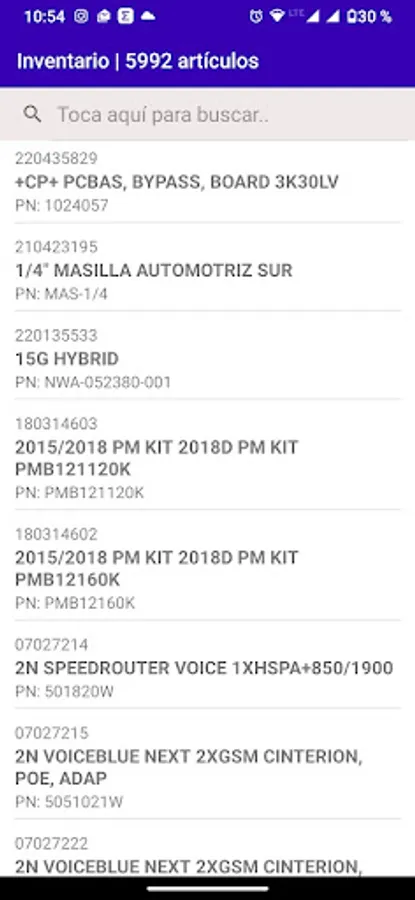 Permite la busqueda en el catalogo de productos de la empresa Telecomunicaciones y Sistemas. Pueden utilizarse los términos siguientes para la búsqueda: código, descripción, número de parte, código de barras y marca.