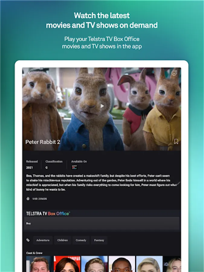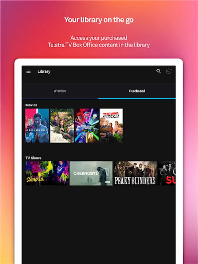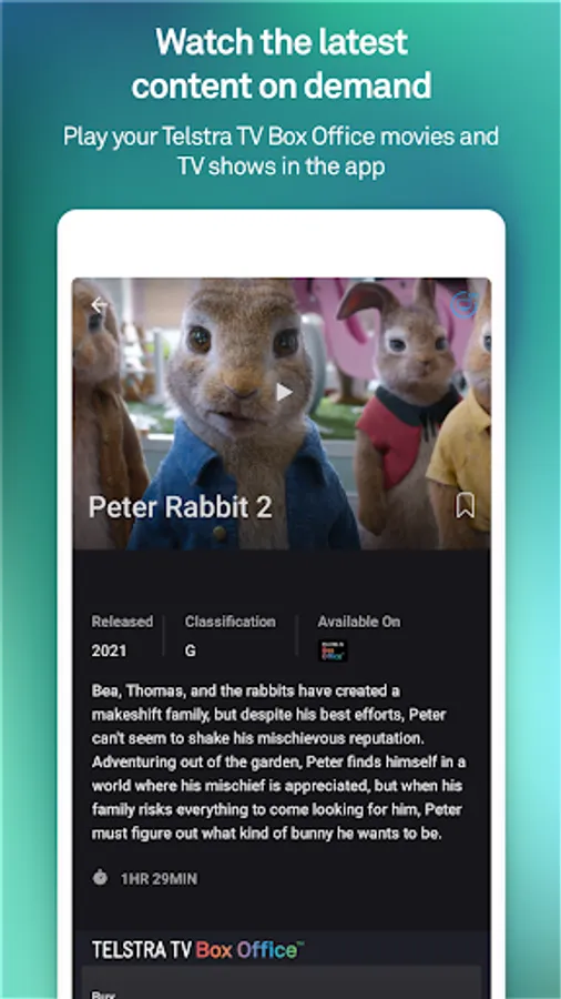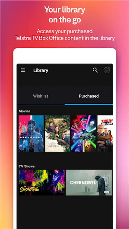 ● Sign in with your Telstra ID to access your Telstra TV Box Office rentals or purchases on your mobile device, and play locally on your paired Telstra TV or Chromecast device