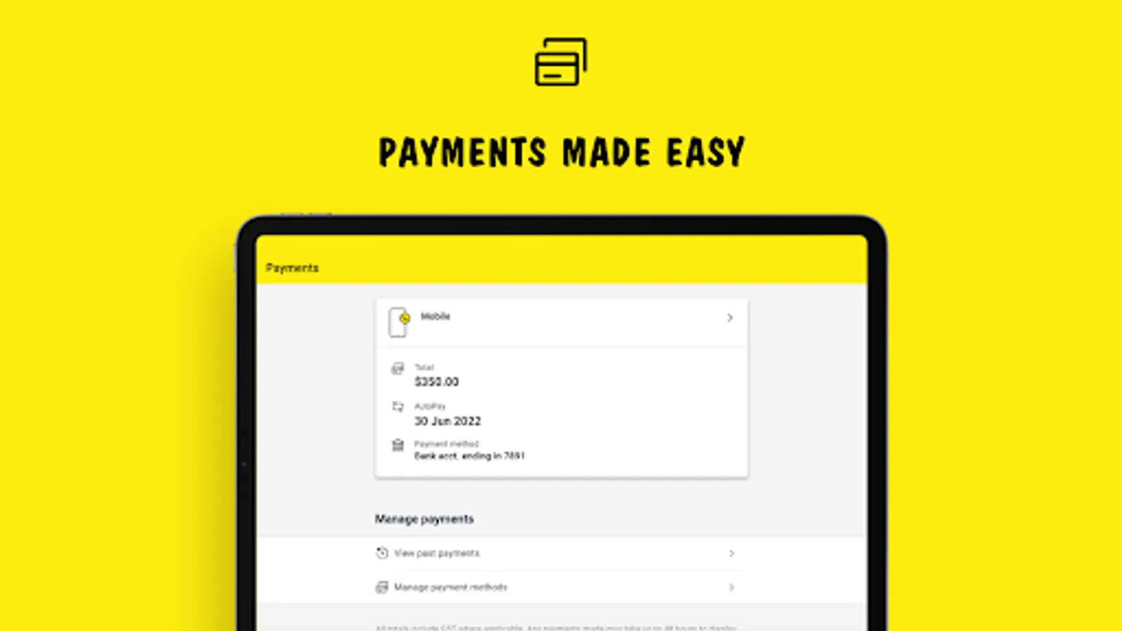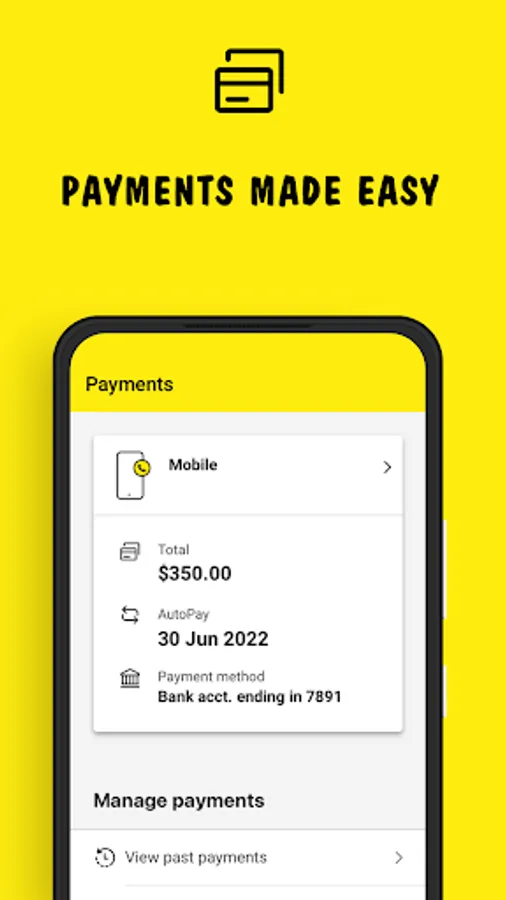 • Make payments securely, change payment methods, set up auto payments, request payment extensions and view current and past payments