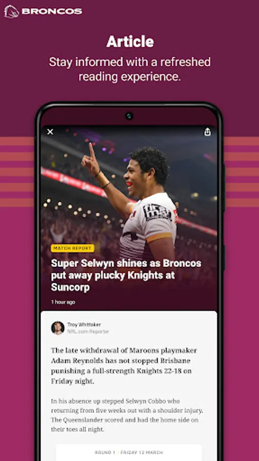 With its updated interface and improved navigation, the Official Brisbane Broncos app is packed with features and content, including: