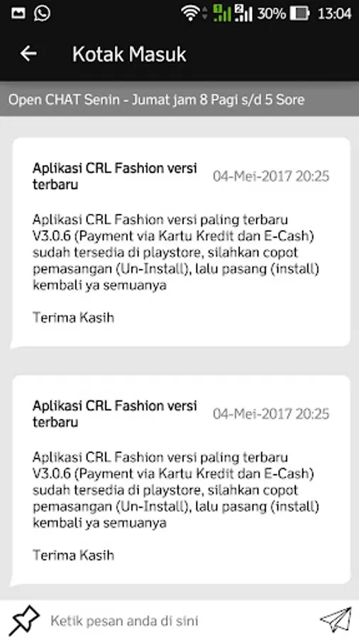 - If there is any trouble and would ask Admin, please Chat directly within the application CRL Fashion.