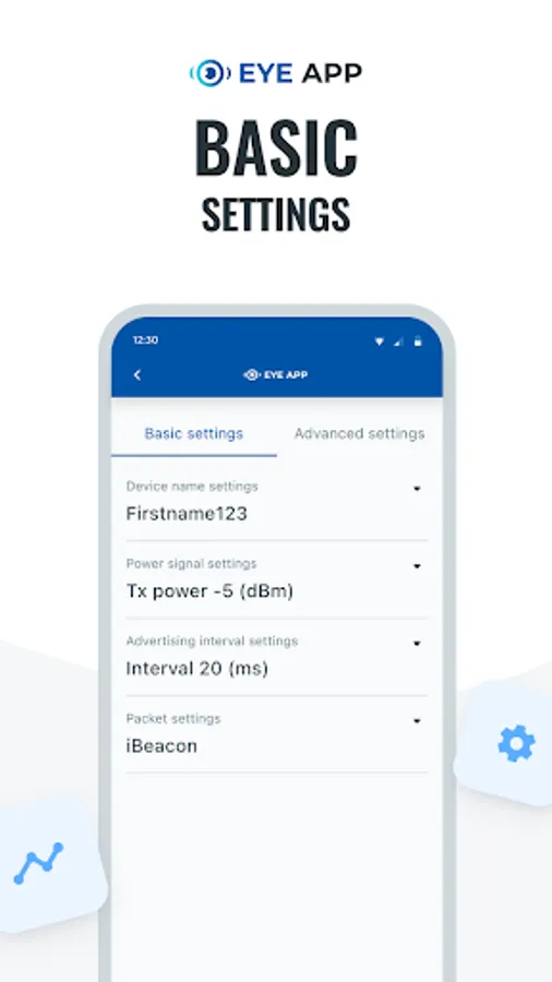 - Name configuration: Device name, Eddystone ID, iBeacon ID.