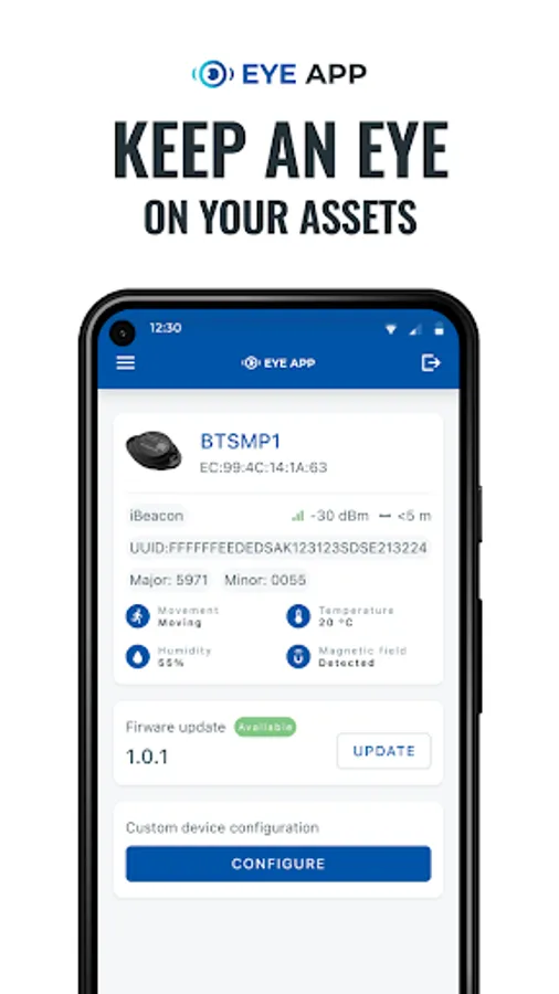 EYE App Teltonika – this application is made for swift configuration, firmware updates and data monitoring on the go gathered from Teltonika EYE beacons and sensors.