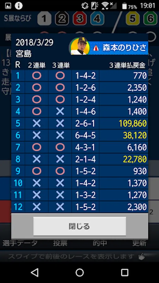 Buy two or three or three singles, and automatically distribute about 8 to 5 minutes before the deadline, including each boat, the position of the boat, the evaluation of the exhibition (◎ ~ ×), and the short comment. Open the screen to see the latest forecasts.