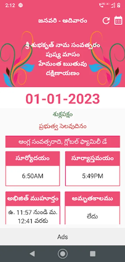 This Telugu Calendar 2023 Telugu Panchangam 2023 app providing the Panchangam and Festival details for the year 2023.