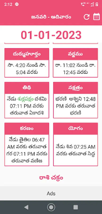 Important details in telugu calendar panchangam 2023 app :