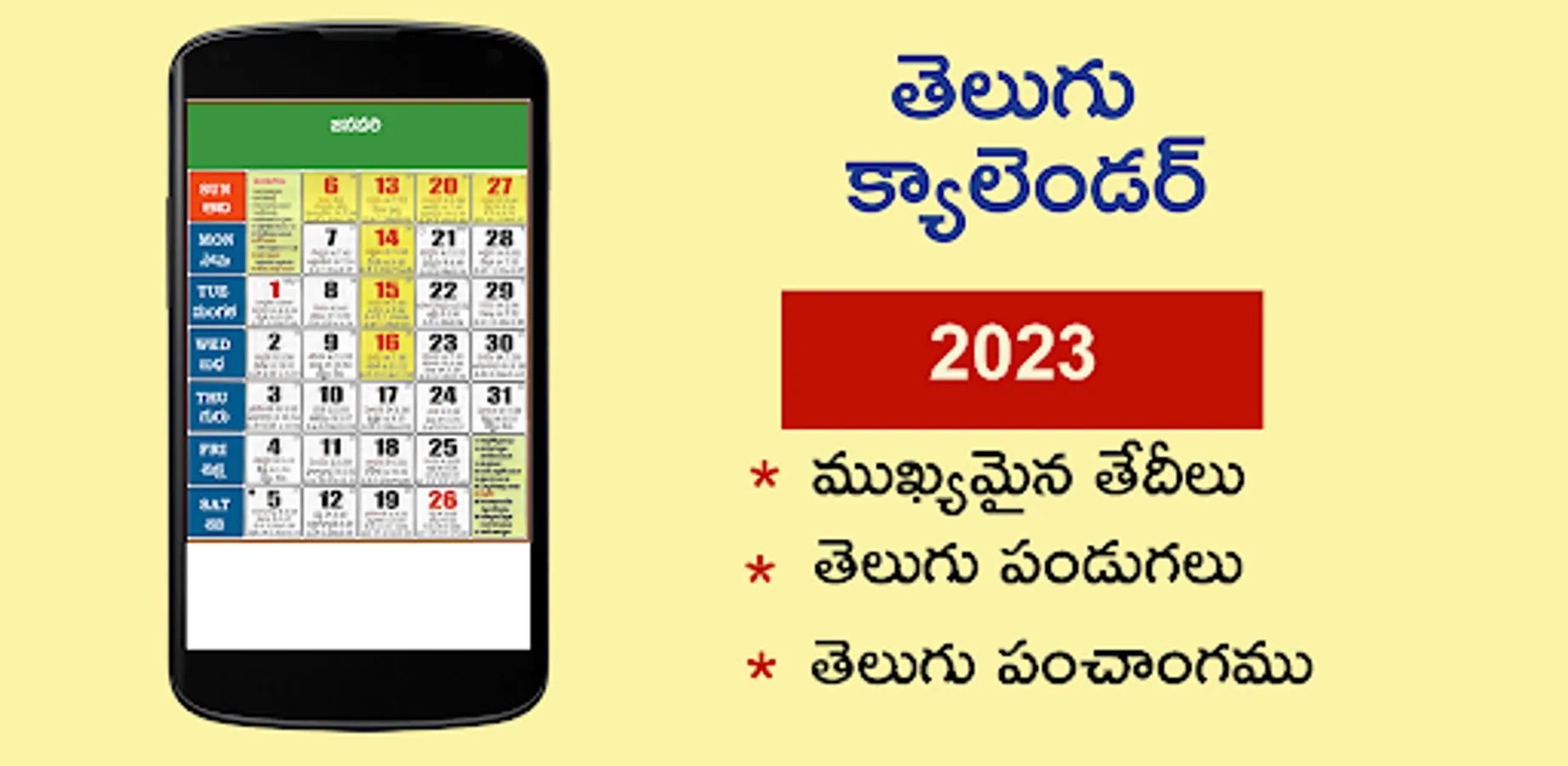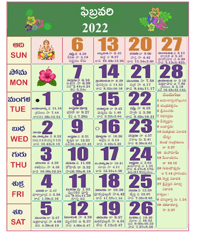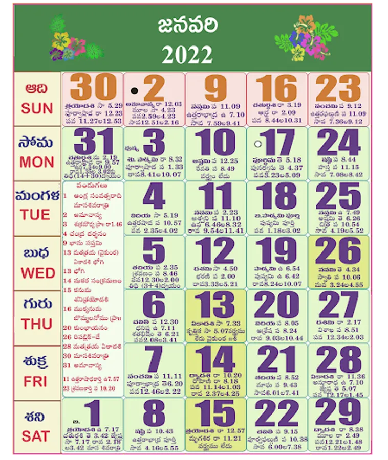 Calendar 2023 is available with Telugu Panchangam.
