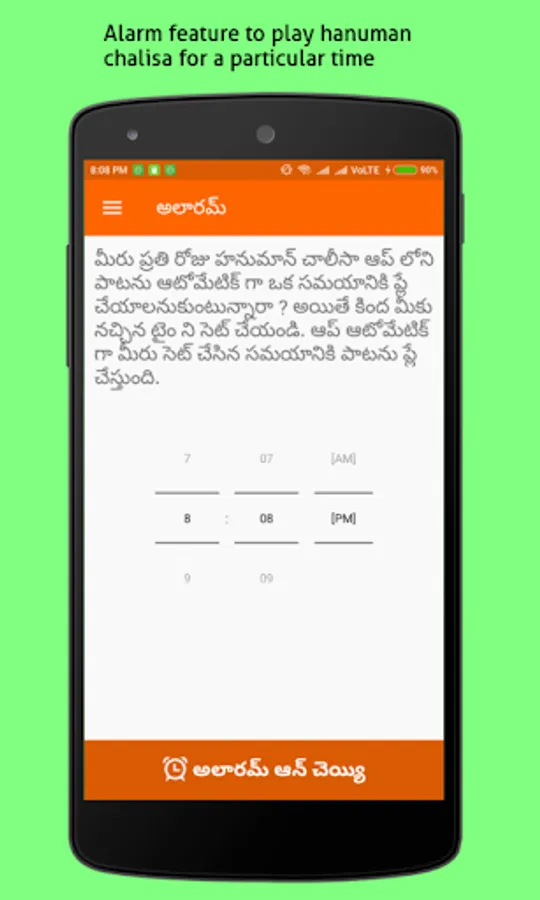7) Use scheduler/Alarm feature to play hanuman chalisa song automatically for a particular time every day.