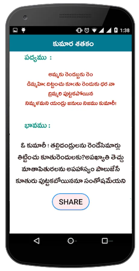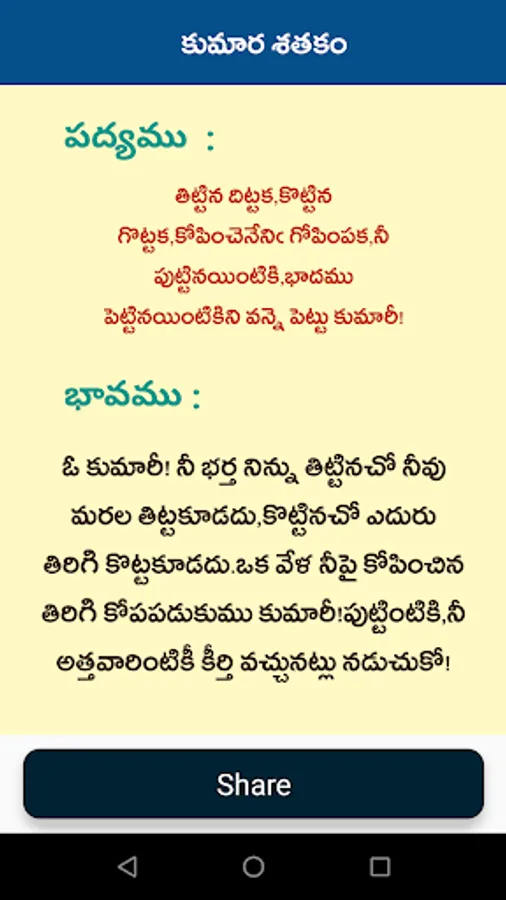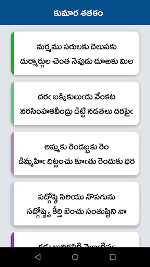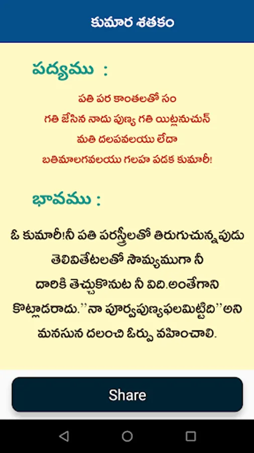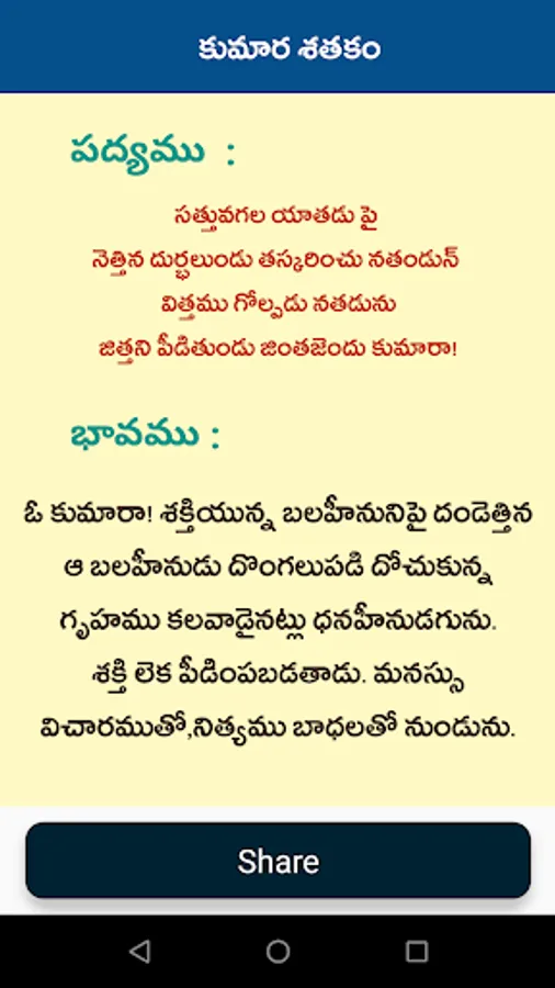 Easy to Read and understand Telugu Kumara Sathakamu Padhyalu in Telugu.