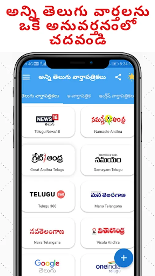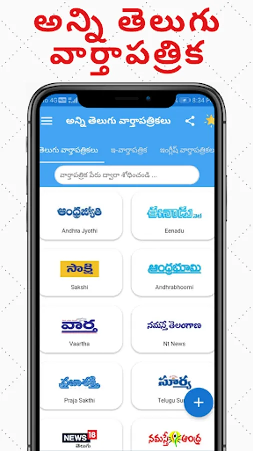 అన్ని ప్రధాన ఆంధ్రప్రదేశ్ మరియు తెలంగాణ వార్తాపత్రికలను ఒకే అనువర్తనంలో చదవండి.