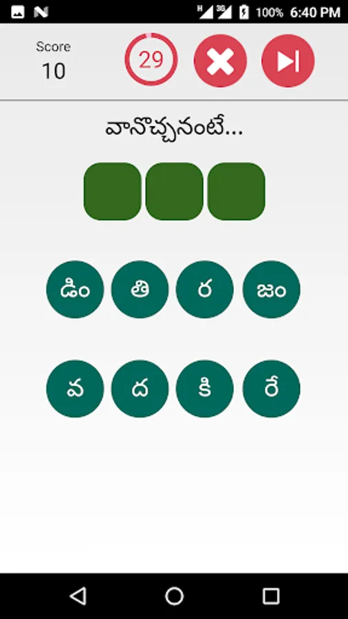 Here The Telugu Word Game concept is You have to find Hidden Answer in Available Letters.