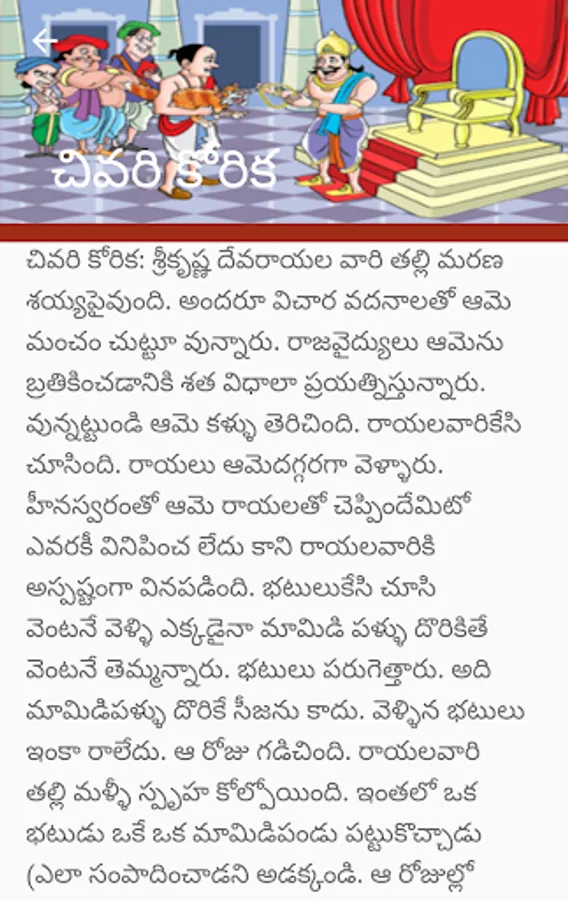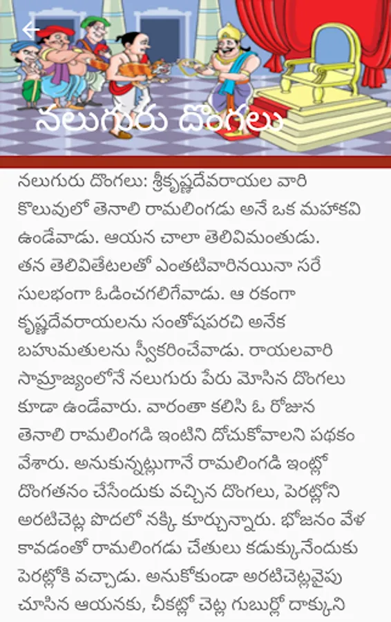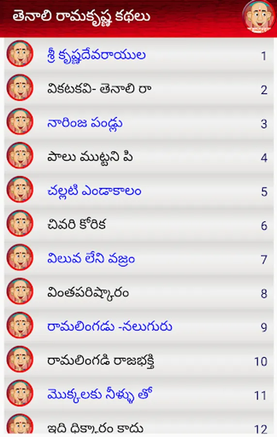 another name called vikata kavi. he solved several problems in devaraya kingdom with humariously . he is one of the person in ashtadiggajas in vijayanagara emperor. he was a good scholor in kannada,telugu ,malayalam and tamil. with his name famous telugu movie released with N R Ramarao and Akkineni Nageswara Rao (NTR and ANR). in this app 39 stories are described.