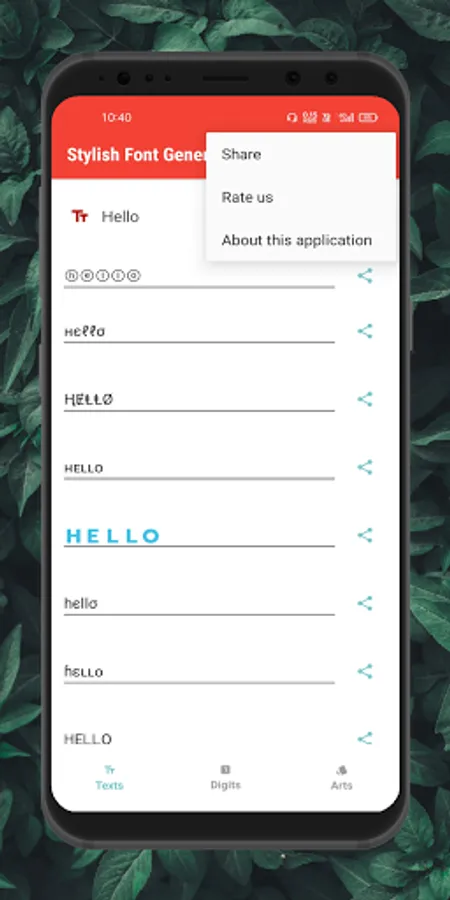 Stylish Fonts - Fancy Arts & Numbers App lets you change the font used on your device. It makes your Instagram account look more attractive. It impresses your contacts on Whatsapp and Snapchat. It generates more likes on other Social Media platforms such as Facebook and Twitter. This app includes a variety of Fonts with very distinct styles. All Fonts can be used for free.