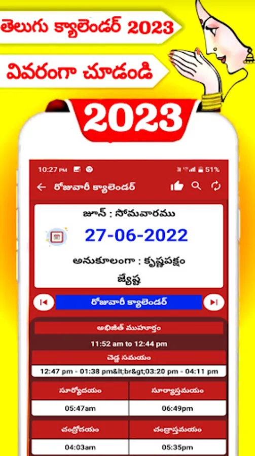 Single app with and 2023 year calendar and panchangam for telugu speaking people