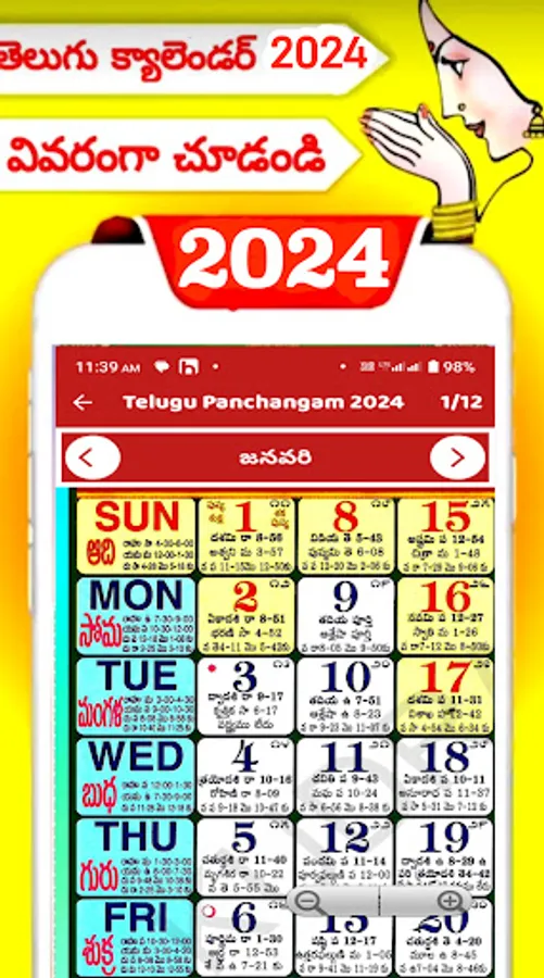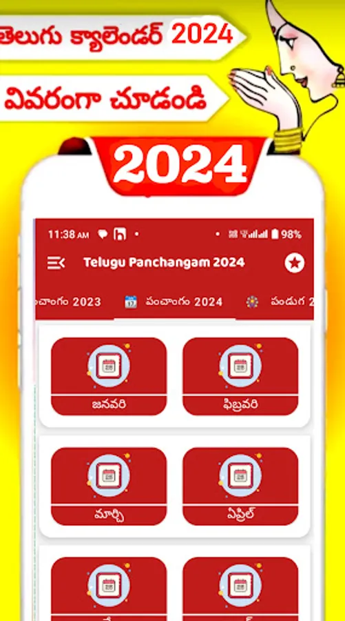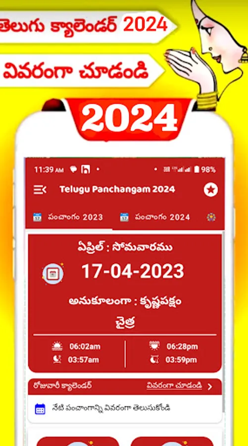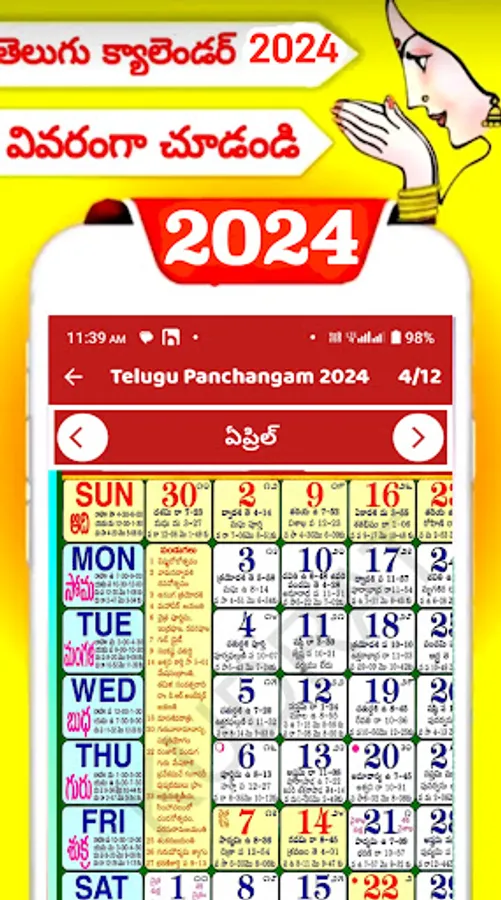 Single app with and 2024 year calendar and panchangam for telugu speaking people