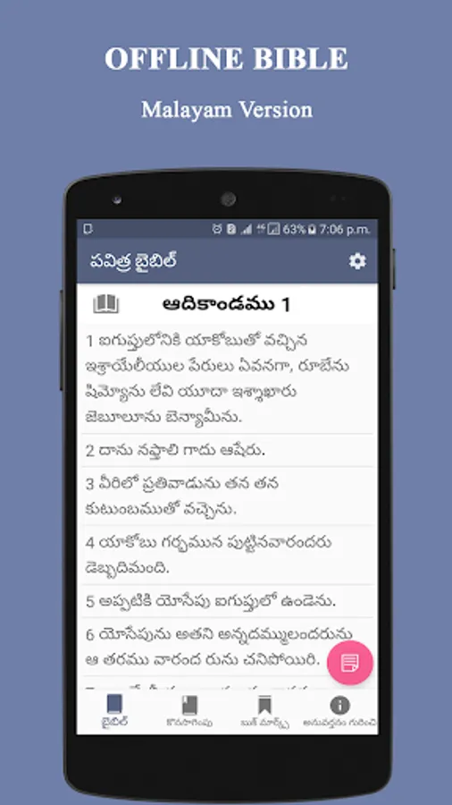 ★ Navigation to a particular verse are made possible by selecting the particular book, particular chapter, and the particular verse through the icon present in the bottom right corner enclosed in a red circle.