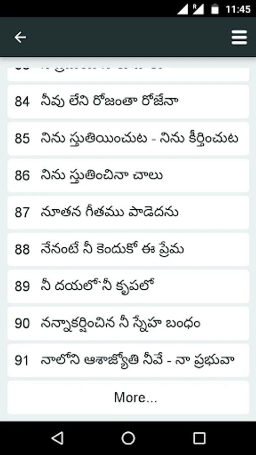 2. Best Telugu Christian Song Lyrics with convenient index with very less application size.