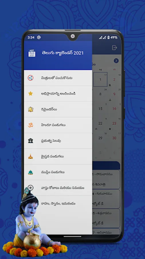 Telugu Calendar 2021 App Features:
