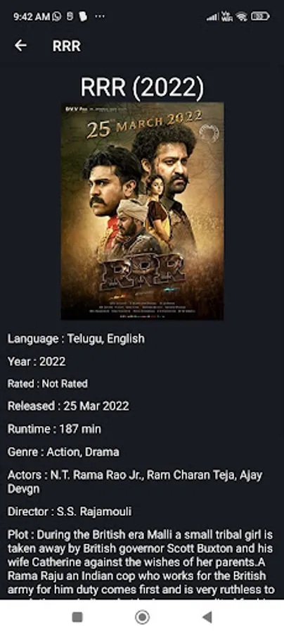A user can get the movie details by providing its title of any language across the world. The results page will show the basic details and poster of the particular movie.
