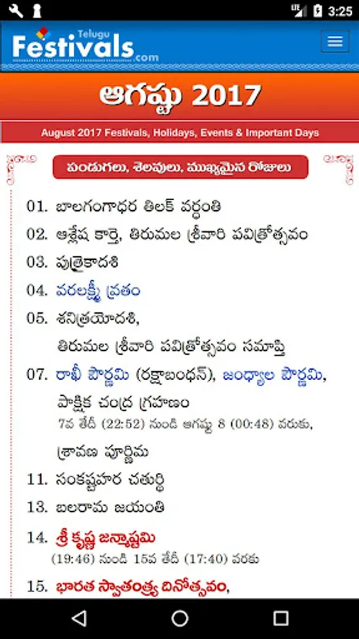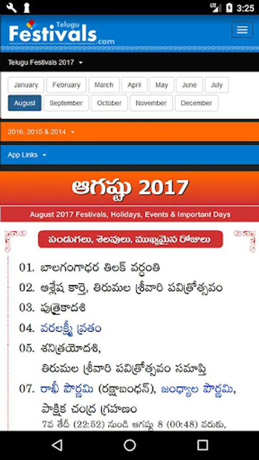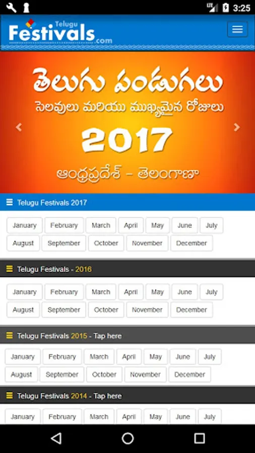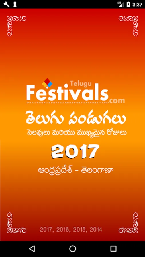 Telugu Festivals for 2017, 2016, 2015 and 2014 App. Festivals, Holidays, Government Holidays, Events and Important Days for Telugu States (Andhra Pradesh & Telangana).