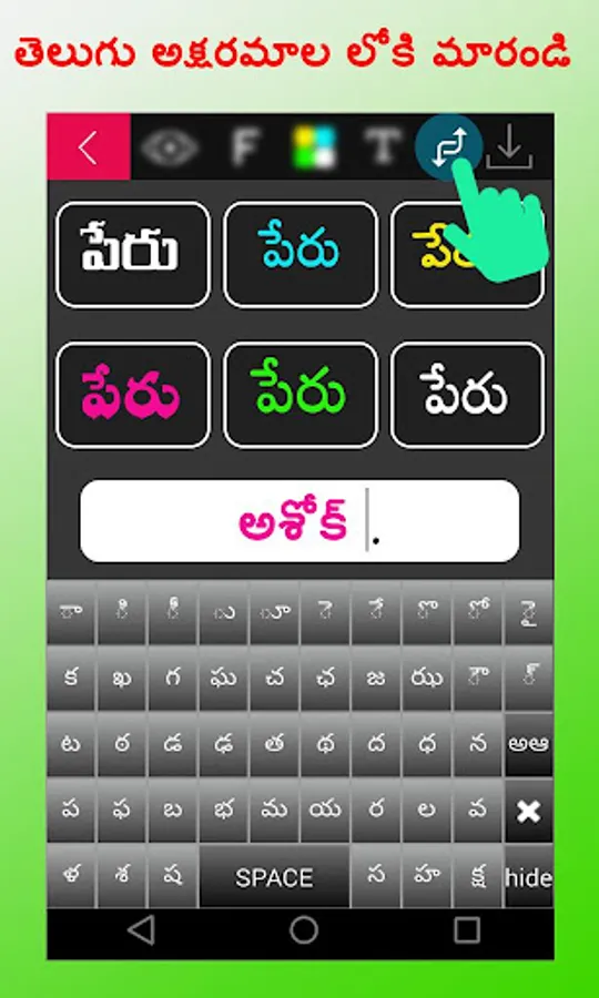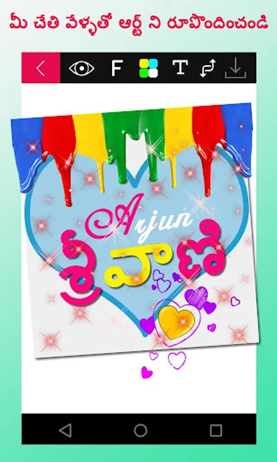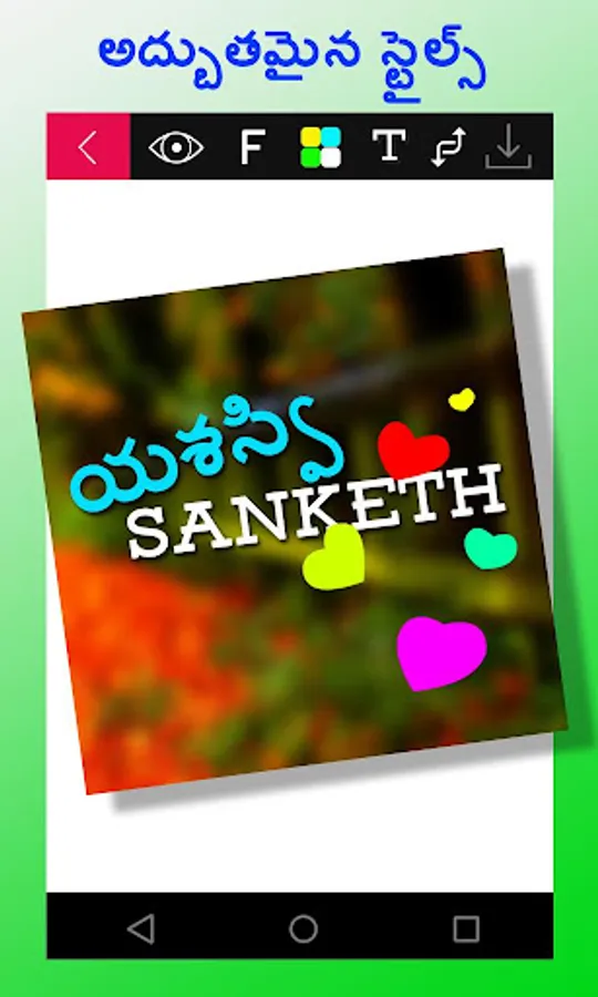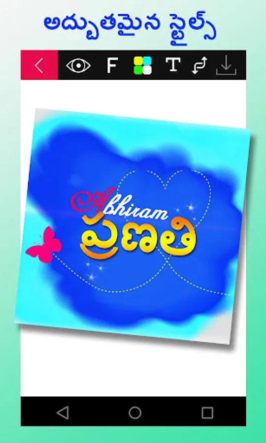 Telugu Name Art provides unique font styles and allows you to create beautiful photos out of any text and share it with your friends on social networks.