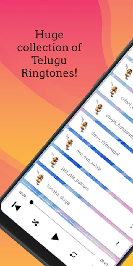 Telugu Ringtones app provides offline Telugu songs ringtones for your mobile. Select your favorite ringtone from our Telugu songs ringtones collection. If you like Telugu songs or fan of Telugu mp3 music, you will definitely love our Telugu ringtones app.