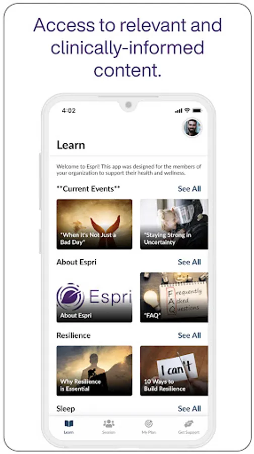 Dedicated to advancing mental health and wellness, Espri by TELUS health is a mobile app that enables organizations to support members with targeted mental health resources. Developed with the guidance of occupation-focused clinicians, Espri provides a unique combination of tools to support prevention, timely access to help in times of crisis and overall mental wellness. Espri can be tailored to the unique mental health and wellness priorities of any organization.