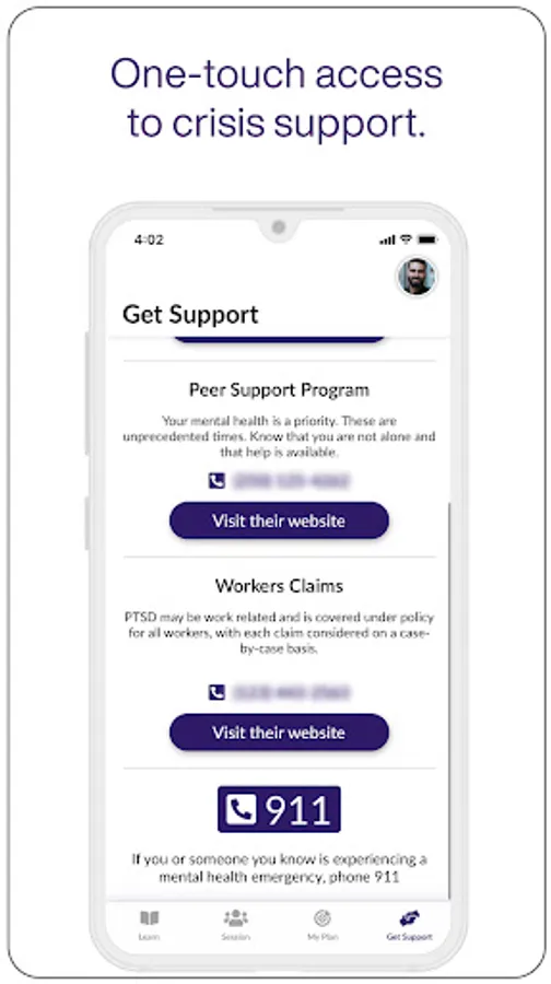 ● Get Support: One-touch access to crisis support. Get Support provides one-click access to an organization’s support resources, such as crisis lines, employee and family assistance programs, critical incident stress programs and healthcare professionals.