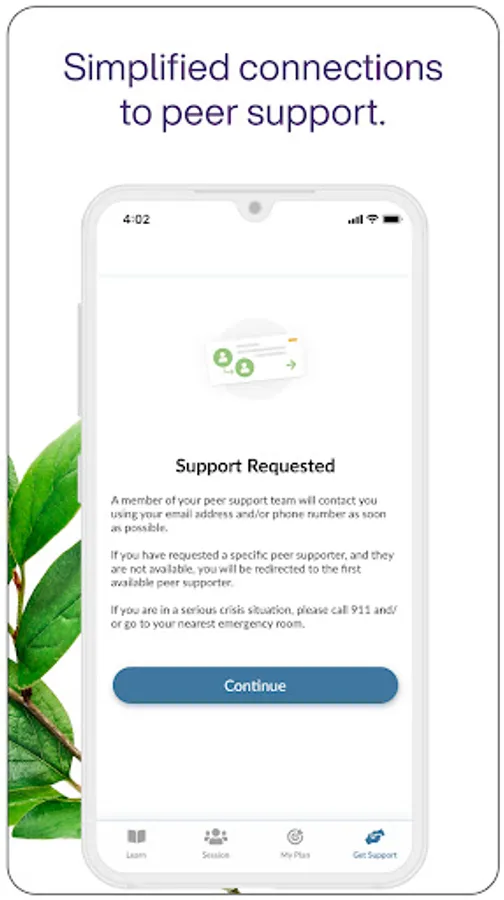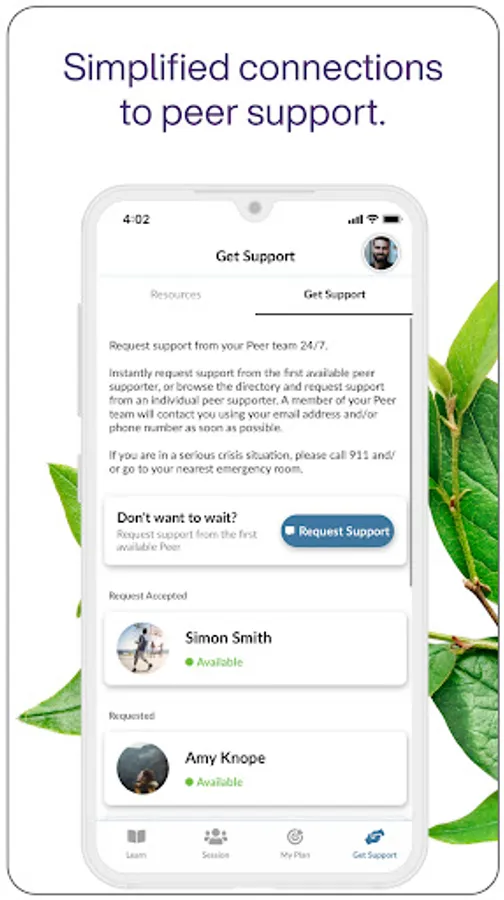 ● Peer Support: Members can request support from their organization's directory of peer supporters. Supports organizations in managing their peer support programs.