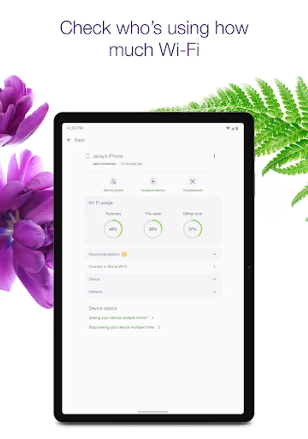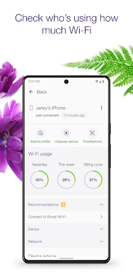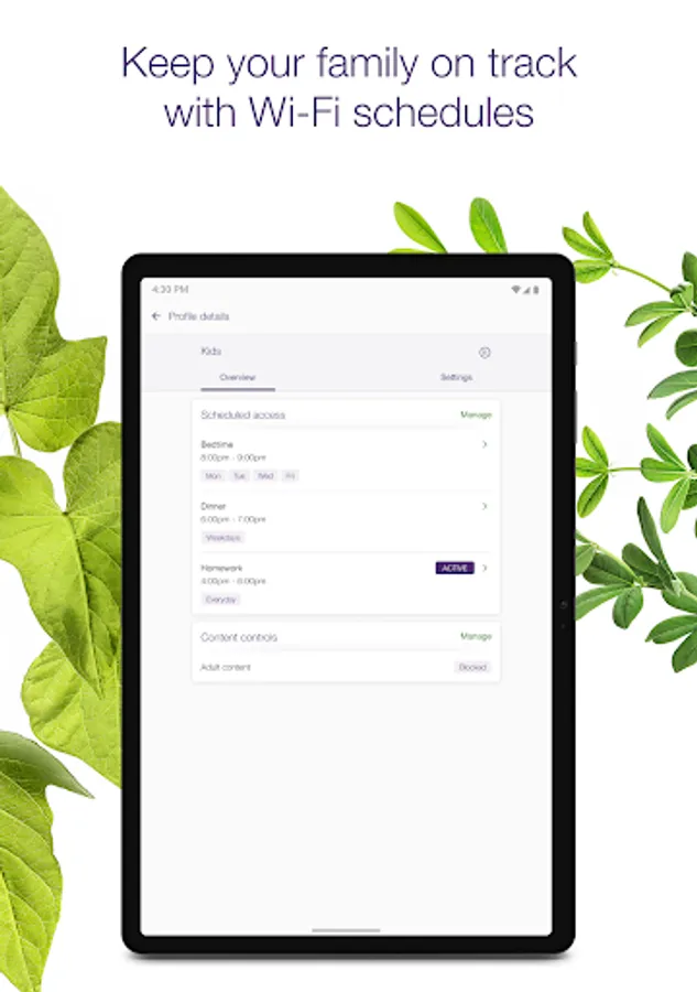 * Pause Wi-Fi device access, or set up schedules to take back family time