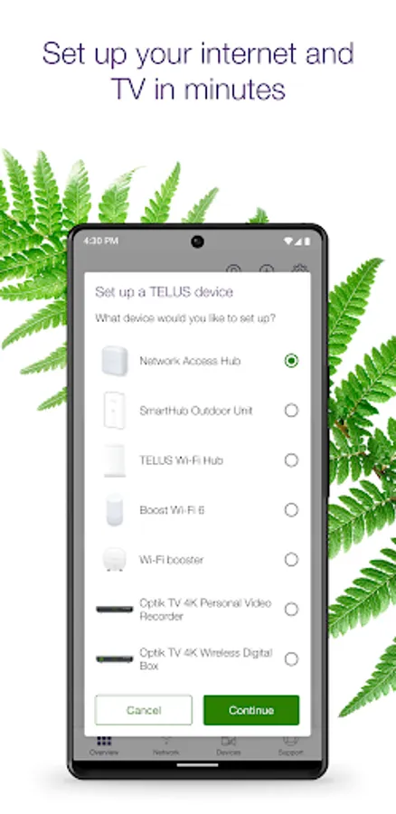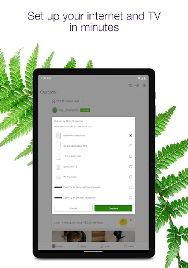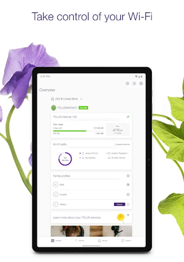 Easily manage your TELUS home services from your mobile device! Self-install TELUS products, set up parental controls, personalize your service and troubleshoot issues right at your fingertips.