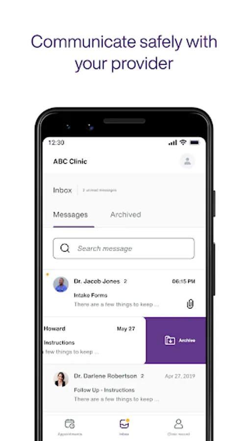 • Communicate safely with your clinician through 2-way messaging