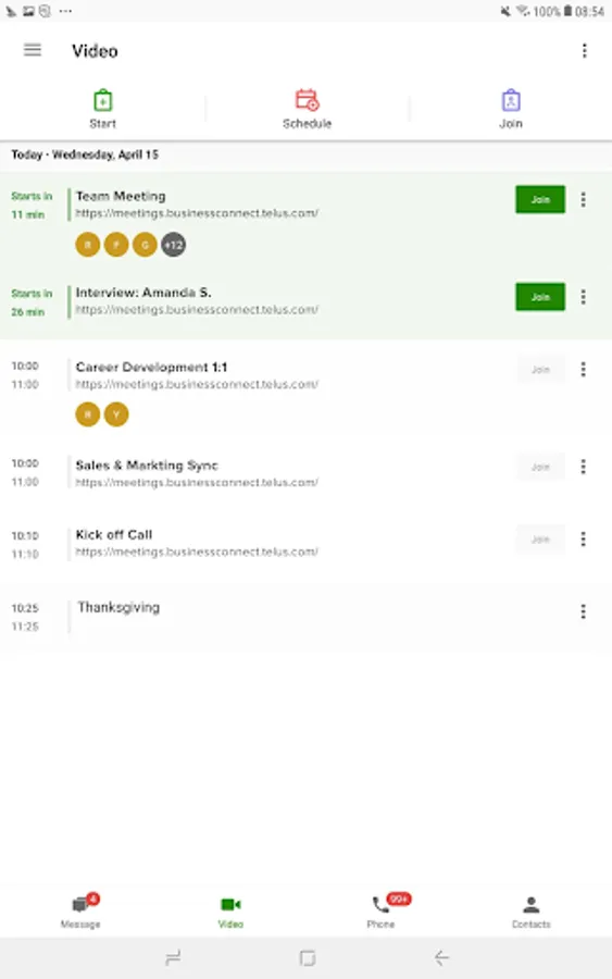 Launch video meetings directly from the app for real-time collaboration with screen sharing, chat, and markup tools.